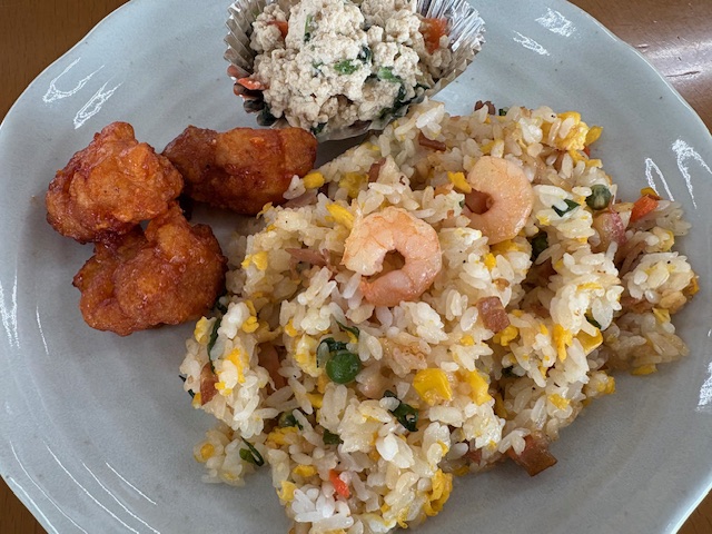 本日の昼食提供は、チャーハン、甘辛から揚げ、豆腐の白和えでし…