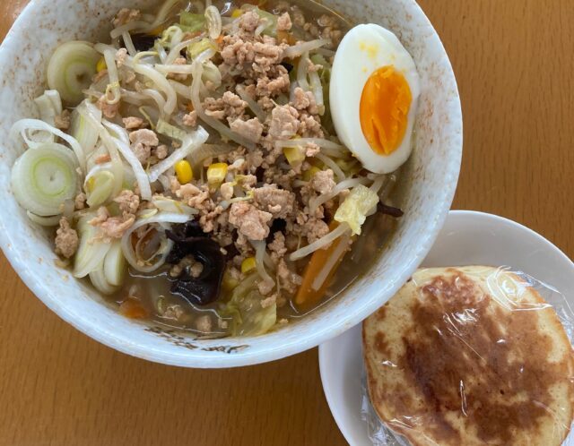 本日の昼食提供は、味噌ラーメン、どら焼きでした🍜 味噌…