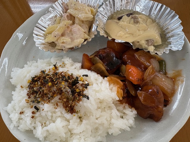 本日の昼食提供は、酢豚、茶碗蒸し、マカロニサラダでした! …