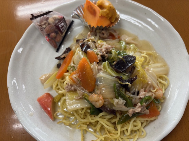 12月22日(月)の昼食提供は、あんかけ焼きそば、柿、スイー…