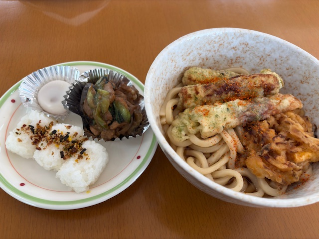 12月17日(水)の昼食提供は、うどん、豚肉と小松菜のみそ炒…