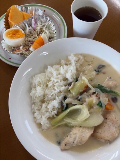 10月10日(金)の昼食提供は、シチュー、サラダ、柿でした!