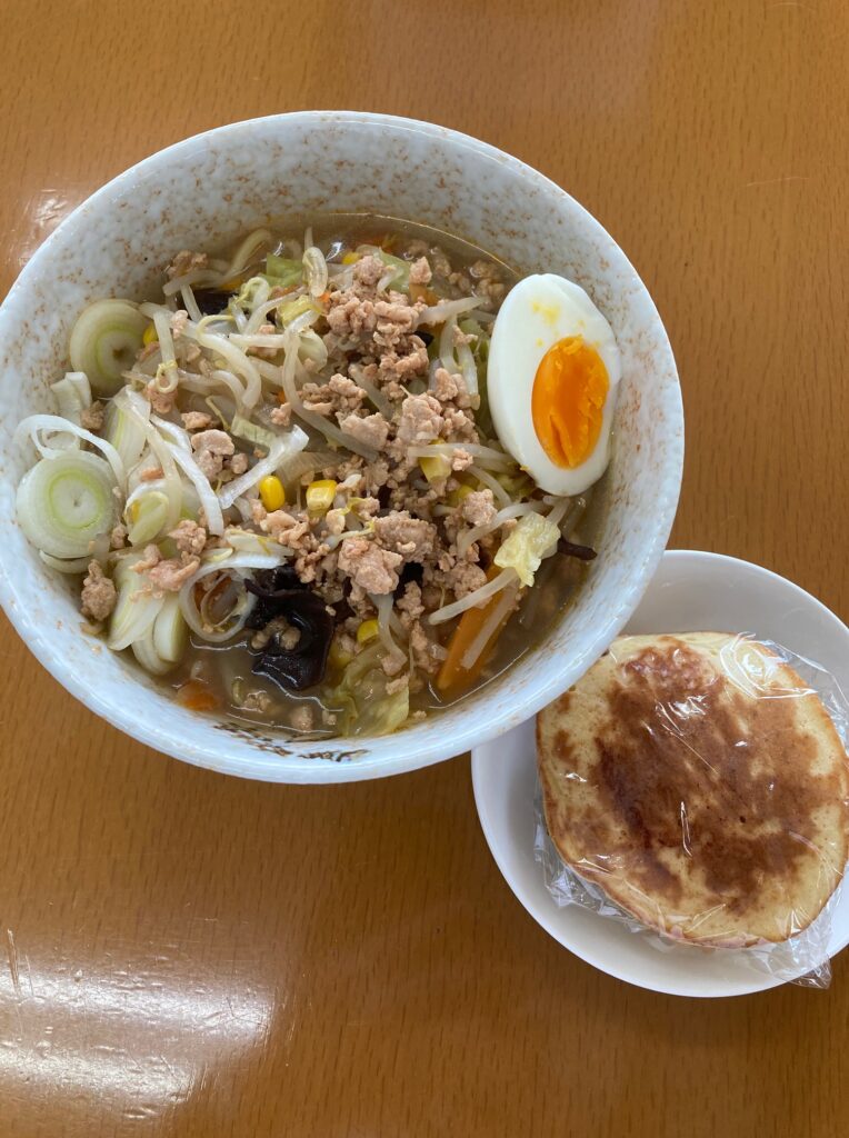 本日の昼食提供は、味噌ラーメン、どら焼きでした🍜