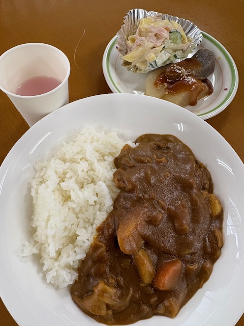 本日の昼食提供は、カレーライス、味噌田楽、マカロニサラダでした!