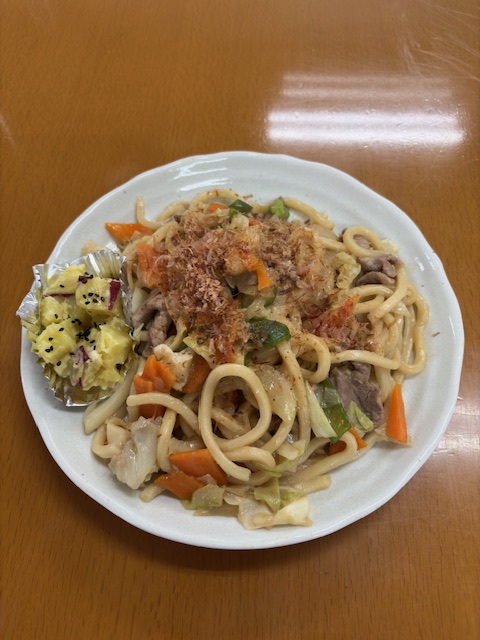 本日の昼食提供は、焼うどん、さつまいものサラダ、アイスでした!
