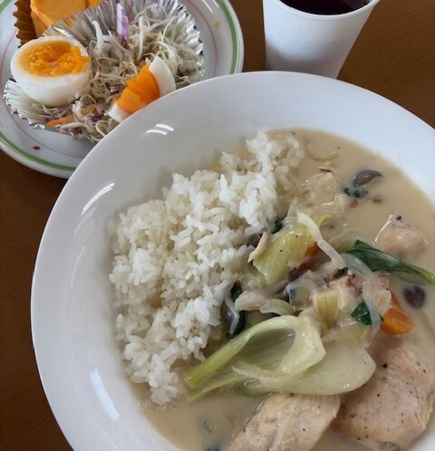 本日の昼食提供は、オムハヤシ、ほうれん草のバターソテー、ポテ…