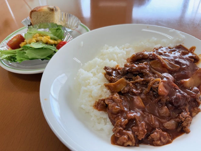 本日の昼食提供は、ハヤシライス、レタスのサラダ、バナナパンで…