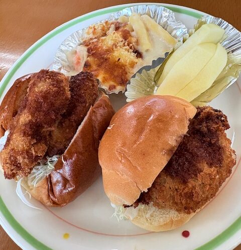 8月20日の昼食提供は、カツサンド、コロッケサンド、グラタン…